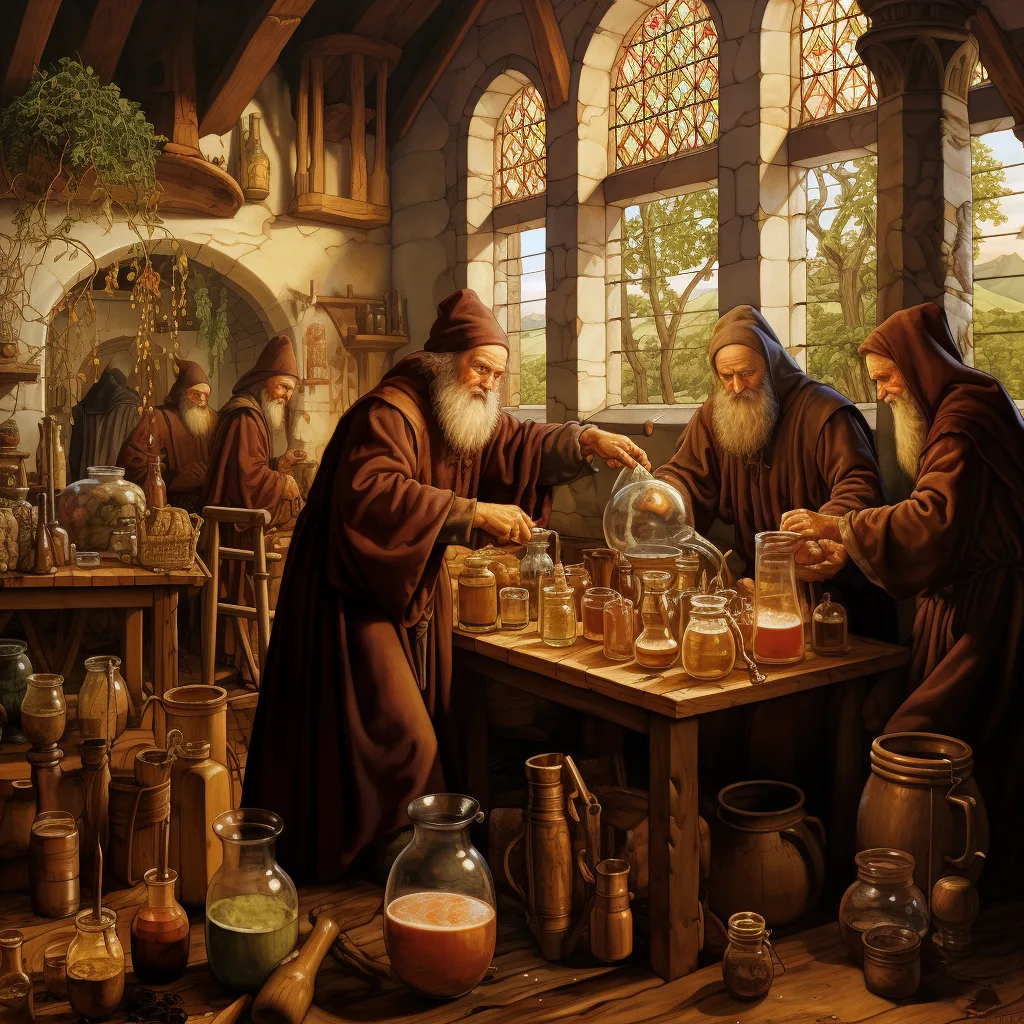 Moines concoctant quelques « remèdes médicinaux »